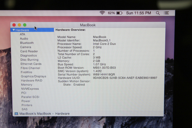 Apple MacBook 13.3″ (2008) Core 2 Duo 2GHz 2GB 160GB (MB466LL/A) Yosemite